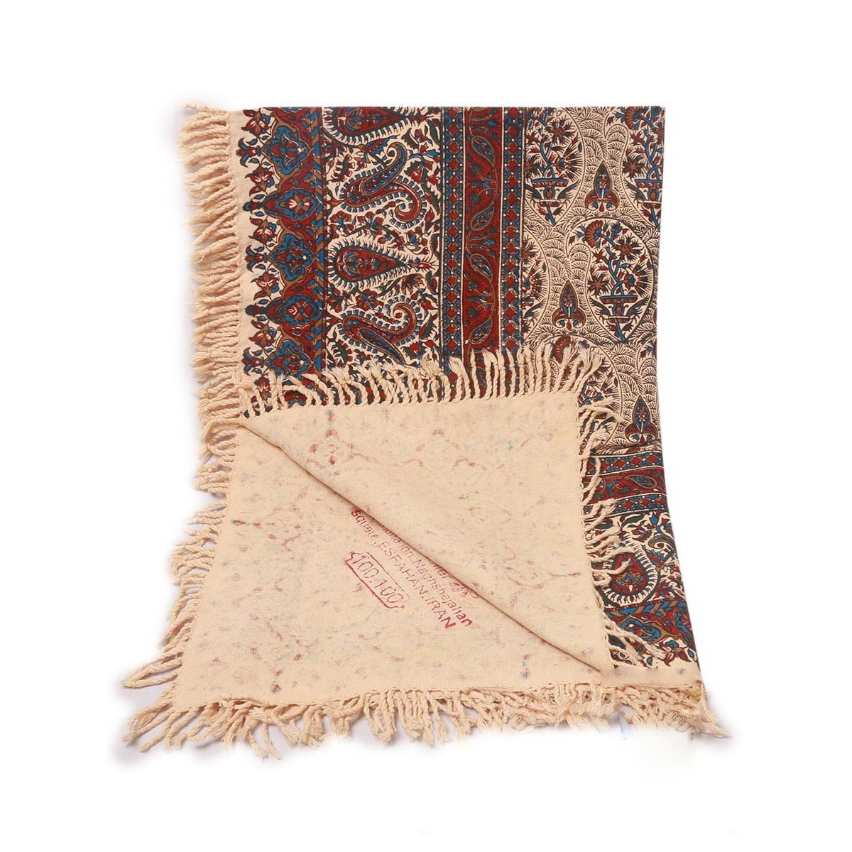 The Square Ghalamkar Tablecloth is hand printed with wooden stamps to form a traditional Persian Paisley each holding a flowering tree. The margins also are designed with cypress trees and Bote Jeghe in Crimson and blue color. The beautiful colors and traditional designs on this tablecloth double its charm.
